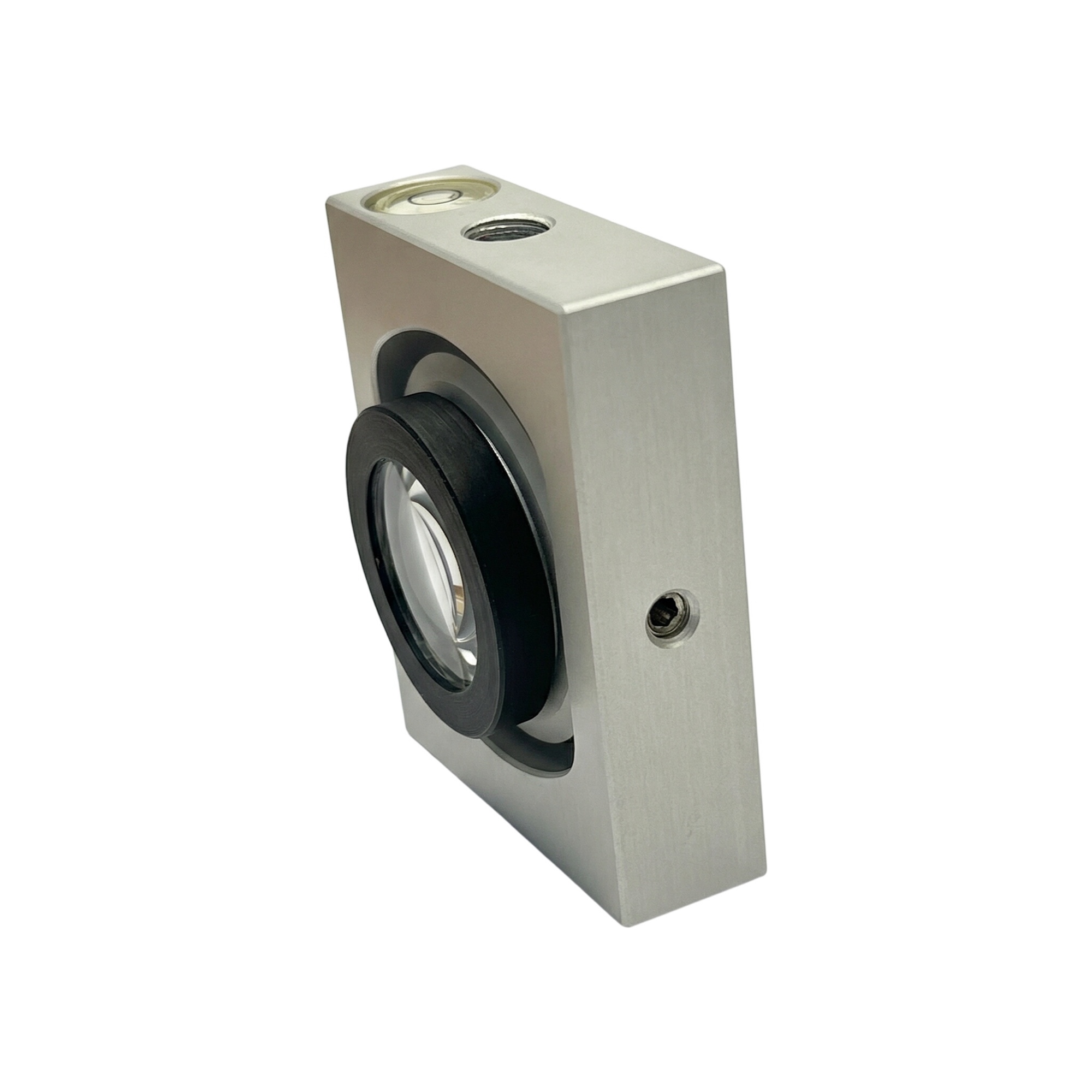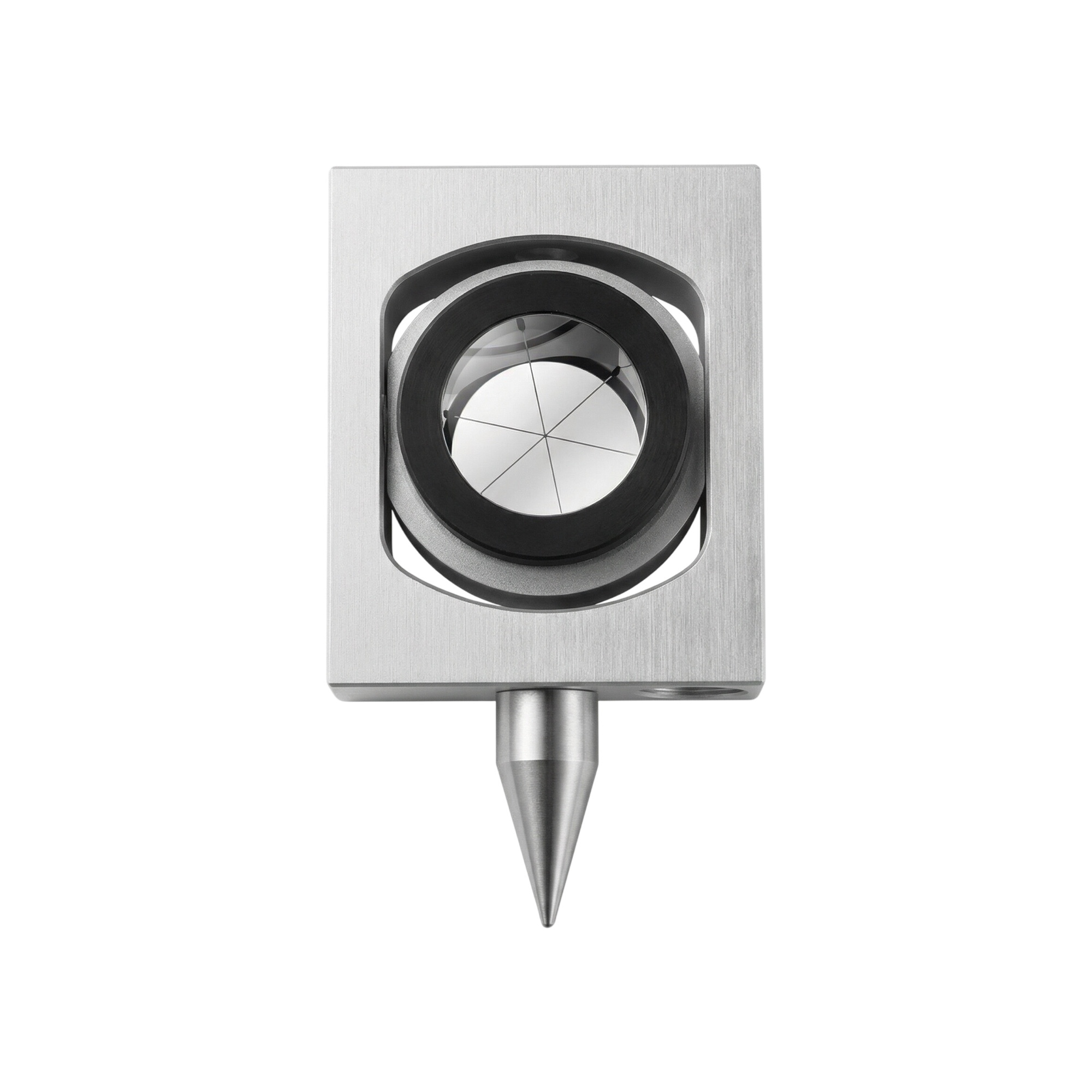 Přesný hranol od firmy Trimble Railway v robustním kovovém rámu. M8 závit a libela na obou stranách rámu.