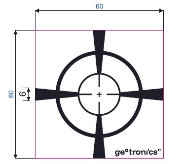 Sada 10 ks žlutých samolepicích odrazných štítků se zvýrazněným záměrným křížem o velikosti 6 x 6 cm.