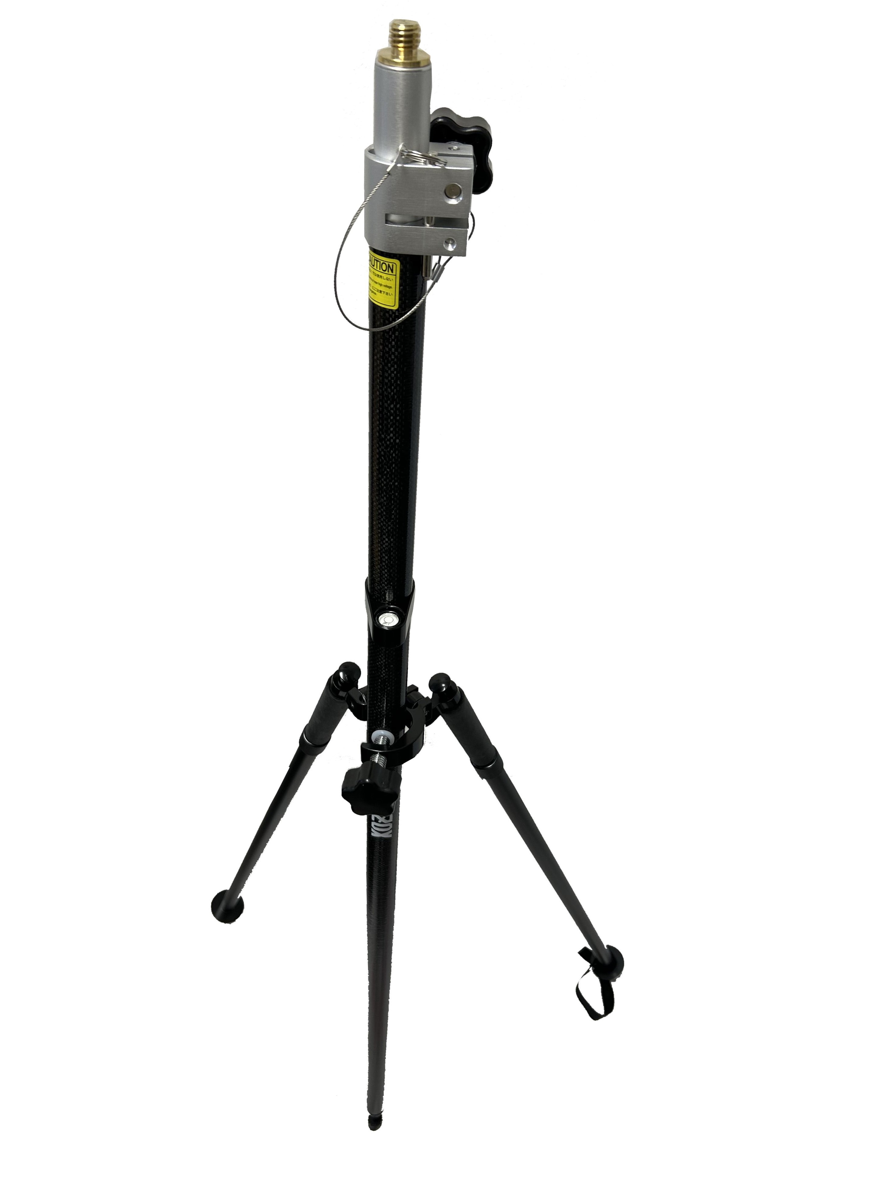 Praktická sada od firmy Myzox sestavené z teleskopické karbonové tyčky pod GNSS přijímač a hliníkového bipodu.